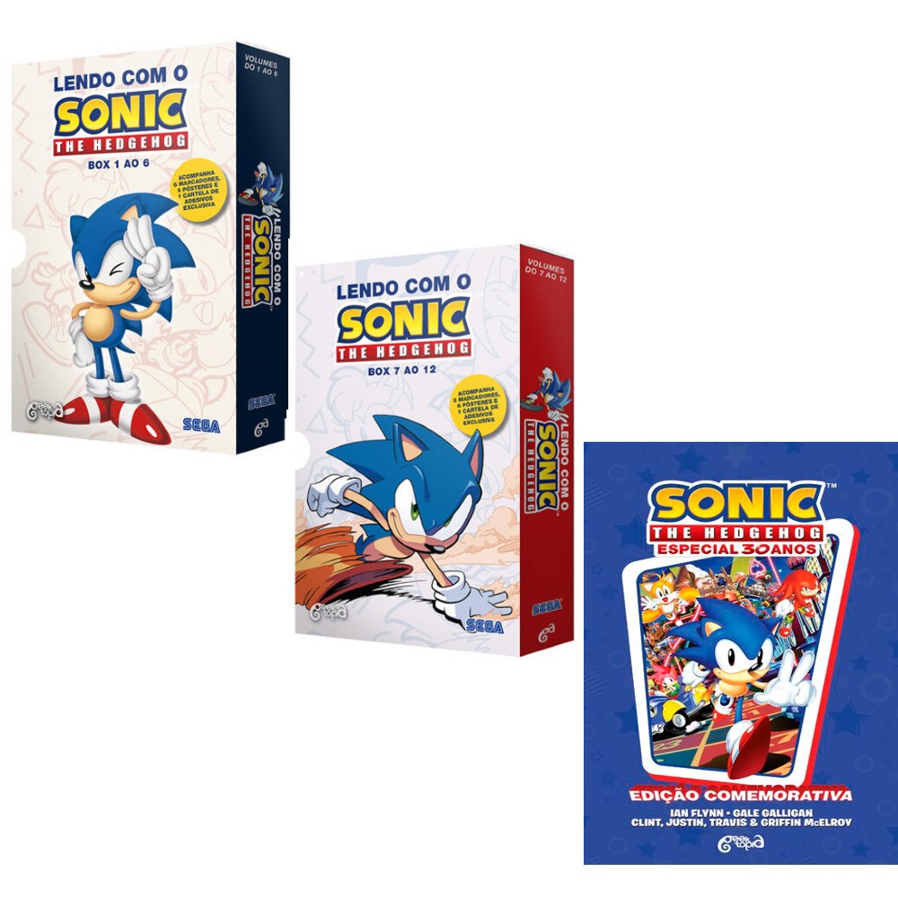 COLEÇÃO 2 BOX LENDO COM O SONIC – THE HEDGEHOG: VOL 1 AO 12 + SONIC THE HEDGEHOG – ESPECIAL 30 ANOS