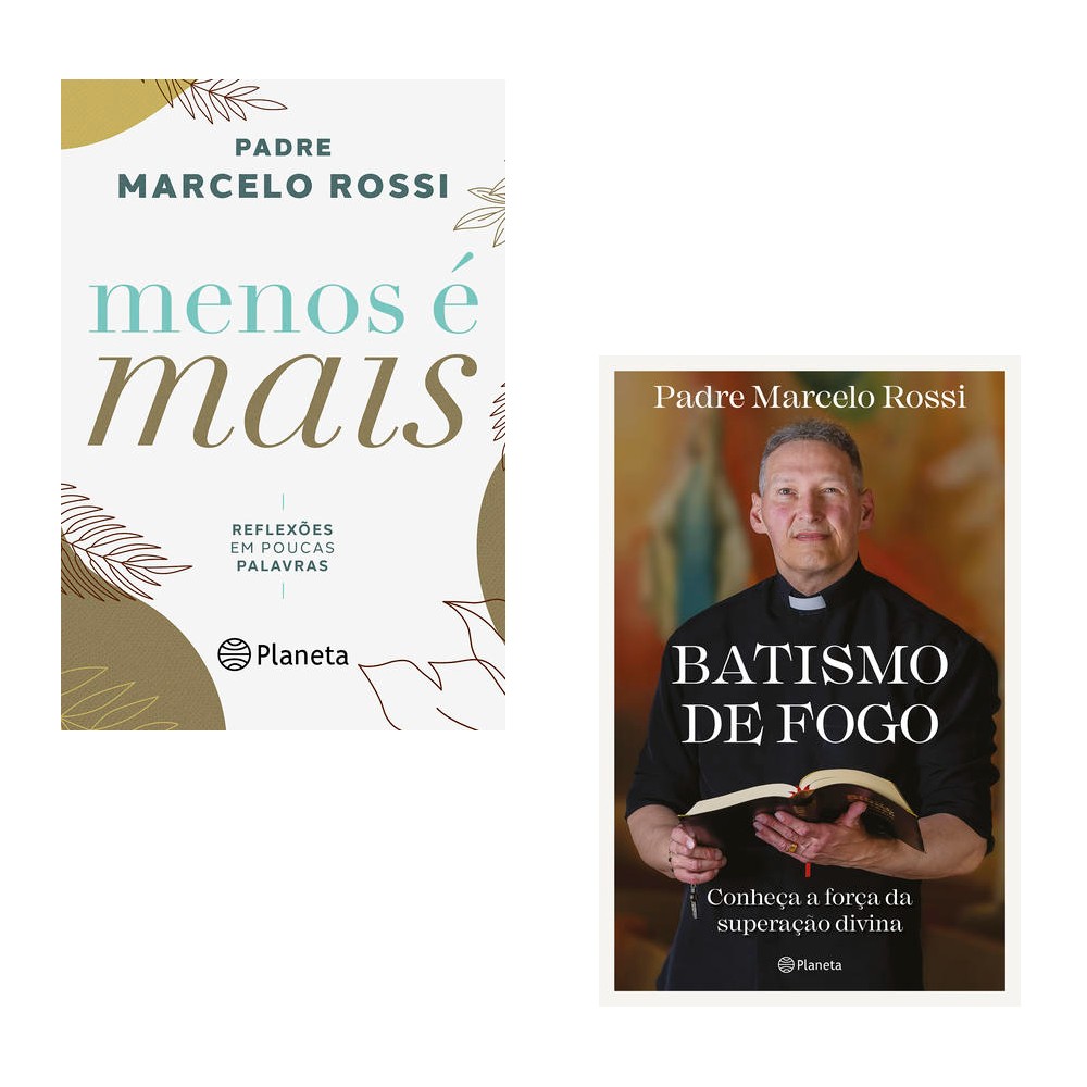 KIT 2 VOL: MENOS É MAIS: “Este livro é resultado de incontáveis missas, conversas, sermões, homilias e até entrevistas que realizei durante quase trinta anos de sacerdócio. É um compilado de frases, pensamentos e aforismos que, tenho certeza,vão beneficiar tanto você quanto seus amados e amadas. Eu o assino, mas como o professei na pessoa de Cristo, entrego-o a você como verdadeiras palavras do Senhor para a sua vida. Que estas reflexões lhe tragam as mesmas bênçãos que me trouxeram quando Deus as confiou a mim, e que cheguem como sussurro do Pai ao seu ouvido no momento em que você mais precisar.” - Padre Marcelo Rossi BATISMO DE FOGO: Há momentos em que somos colocados à prova e nada parece fazer sentido.É para nos ajudar a enfrentar essas dificuldades da vida que Padre Marcelo Rossi se dedica neste livro.