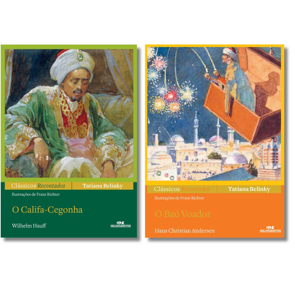 Kit de livros com duas histórias cheias de magia, aventura e romance. Em O Califa e a Caixa Mágica, o califa Chasid, seu grão-vizir e uma princesa-coruja vivem grandes aventuras pelos céus de Bagdá graças a um pó que permite transformar-se em qualquer animal. Já em O Baú Voador, um jovem que desperdiçou sua herança descobre um baú mágico que o leva a uma terra distante, onde conhece uma princesa aprisionada e enfrenta desafios em nome do amor. Juntas, essas histórias exploram coragem, magia e a emoção de grandes aventuras.
