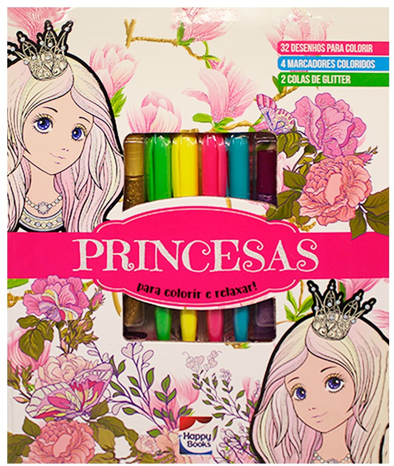 Relaxe, respire e solte a sua imaginação com este incrível livro-kit que acompanha 5 marcadores coloridos e 2 colas com glitter.