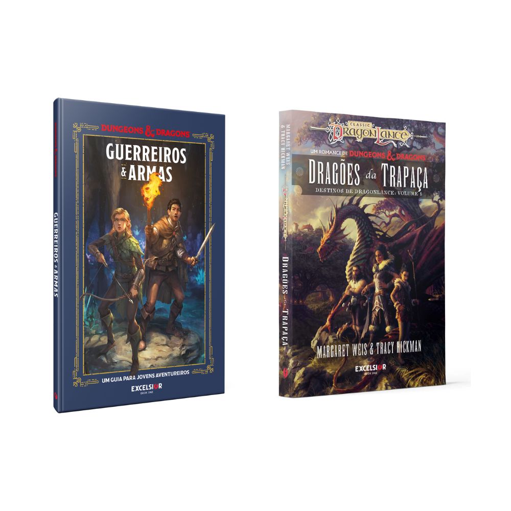 O guia ilustrado produzido pela Wizards of the Coast apresenta o universo de Dungeons & Dragons com foco em guerreiros, armas, armaduras e equipamentos, além de trazer ferramentas para jovens leitores criarem seus próprios personagens e pensarem como verdadeiros aventureiros. A obra é elogiada por veículos como SyfyWire e destaca a criatividade e a riqueza do mundo de D&D. Já o novo romance de Dragonlance, escrito por Margaret Weis e Tracy Hickman, acompanha Destina Rosethorn, que tenta voltar no tempo para impedir a morte do pai na Guerra da Lança. Em sua jornada, ela busca artefatos mágicos poderosos e conta com a ajuda de Tasslehoff Burrfoot, mas suas ações ameaçam alterar o curso do tempo e transformar o futuro para sempre.