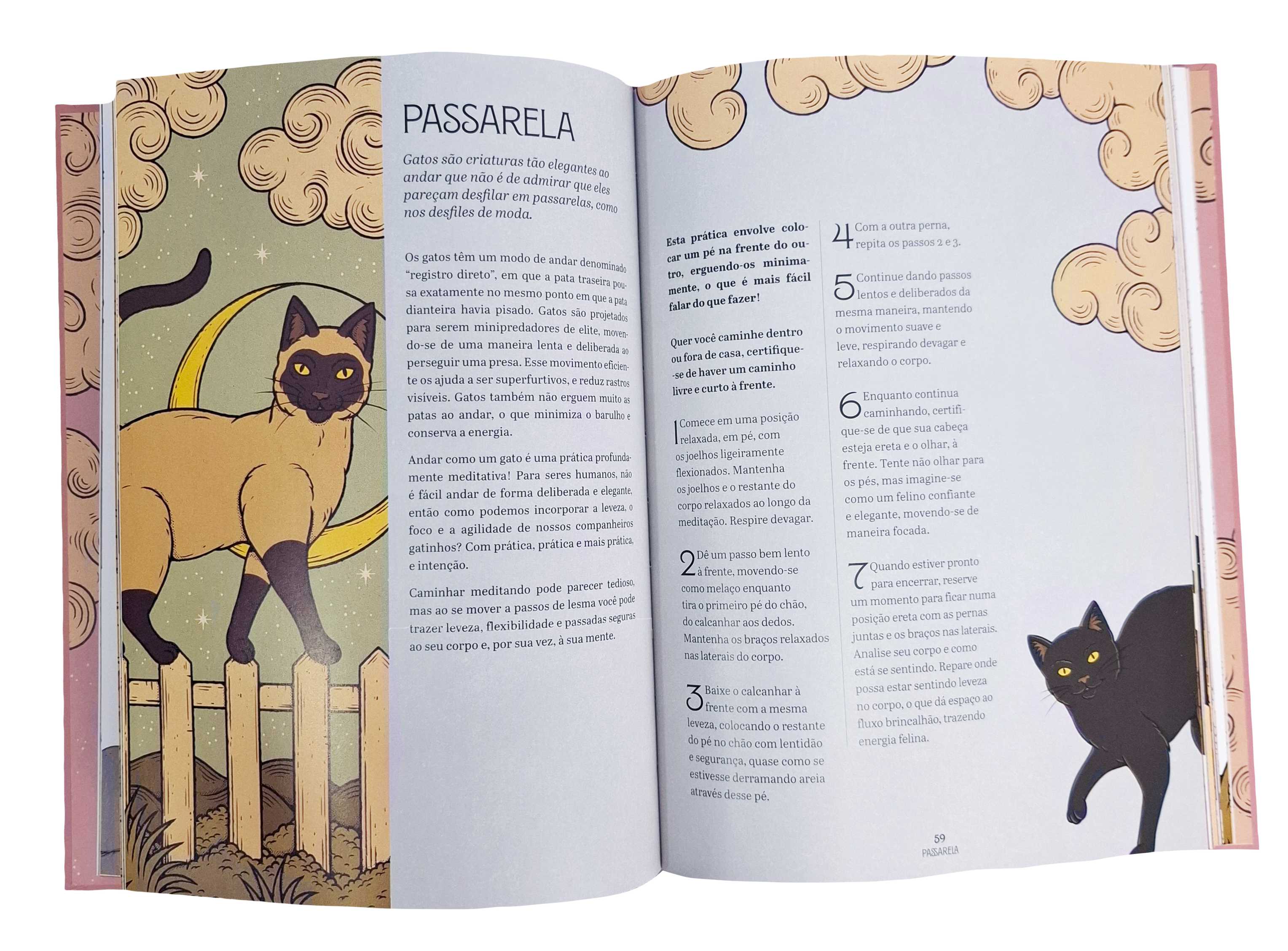 Aprenda a meditar com os maiores mestres zen: os gatos. Você sabia que só de olhar fotos de gatos pode diminuir o cortisol? Ou que seu gatinho satisfeito ronrona na frequência perfeita para meditação sonora? Este livro encantador, com ilustrações d o artista brasileiro Thiago Corrêa, une fatos curiosos a mais de 50 práticas acessíveis para iniciantes e experientes. As técnicas vão desde meditações simples com respiração e mantras até as mais complexas envolvendo som e movimento, sendo o guia pe rfeito para aprofundar sua meditação e apreciar ainda mais a infinita sabedoria do seu amigo peludo.