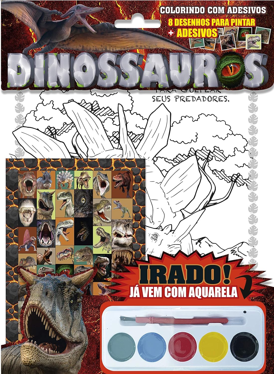 Colorindo com adesivos Dinossauros. Venha brincar e se divertir com os dinossauros mais irados, são 8 desenhos para colorir, adesivos superlegais e vem com uma aquarela.