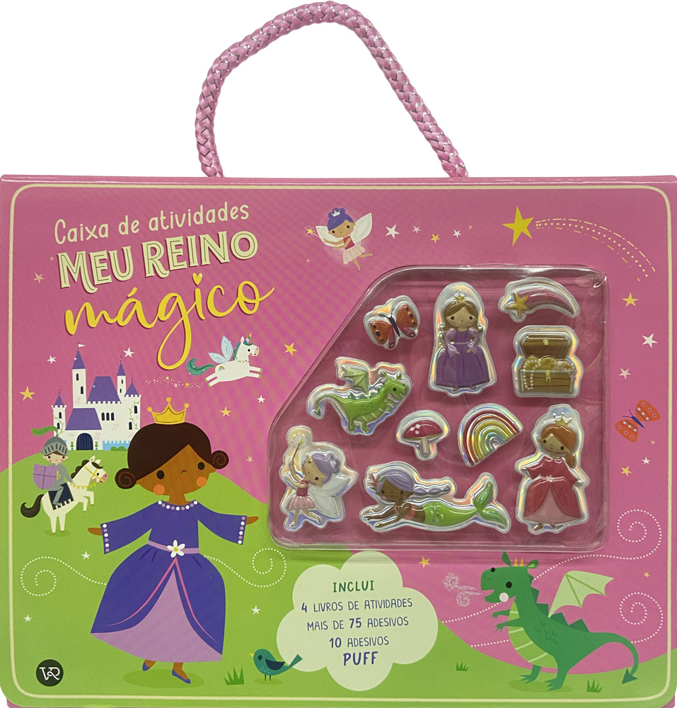 Esta incrível caixa de atividades mágica está recheada com muita diversão! Aqui dentro há 4 livros com enigmas, jogos e atividades para desenhar e colorir, além de mais de 75 adesivos para as atividades e 10 lindos adesivos puff para alegra r o seu dia!