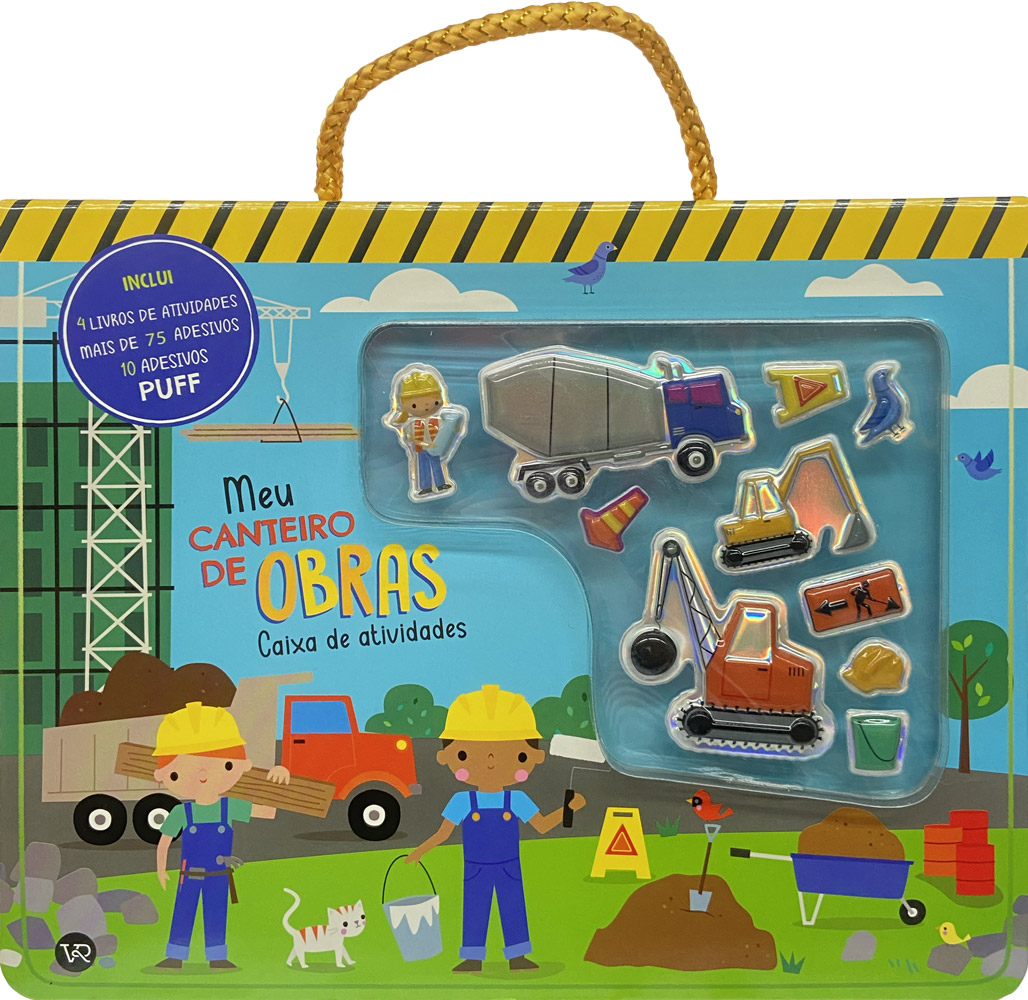 Esta incrível caixa de atividades está recheada com um divertido canteiro de obras! Aqui dentro há 4 livros com enigmas, jogos e atividades para desenhar e colorir, além de mais de 75 adesivos para as atividades e 10 lindos adesivos puff pa ra alegrar o seu dia!