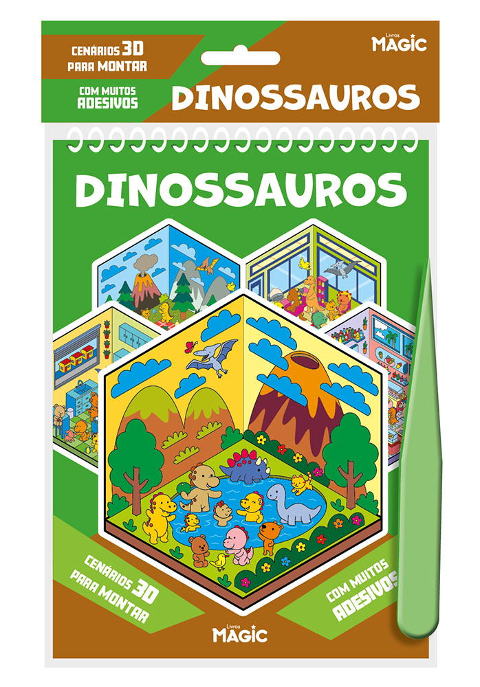 Dinossauros com Adesivos 3D - 12 páginas